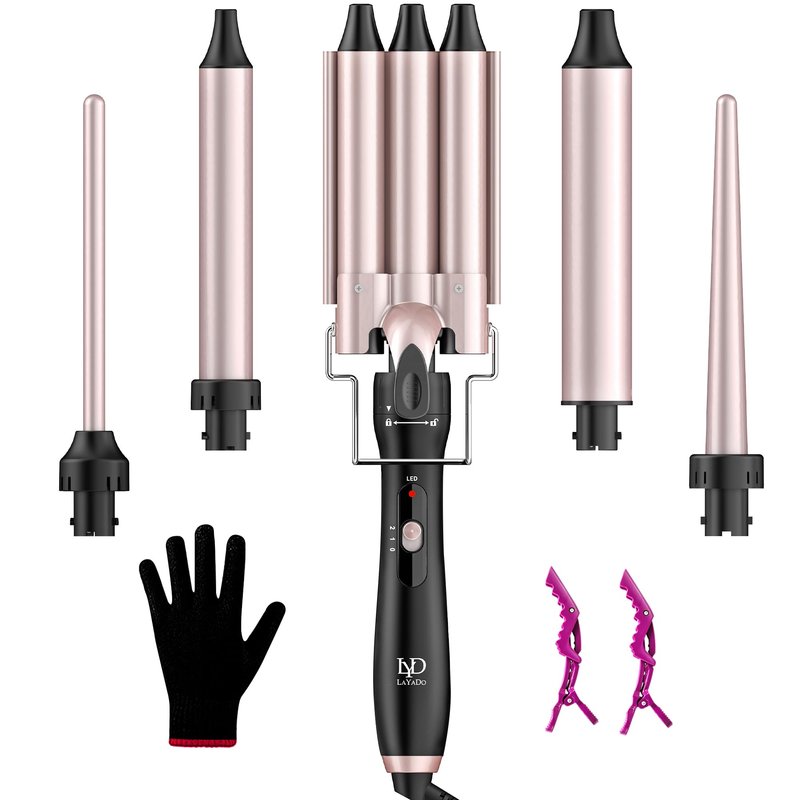 Waver Curling Iron Wand, LAYADO 5 in 1 Curling Iron Set, Curling Wand with 3 Barrel Curling Iron and 4 Interchangeable Ceramic Hair Wand 0.35"-1.25", Fast Heating Hair Curler in All Hair Type