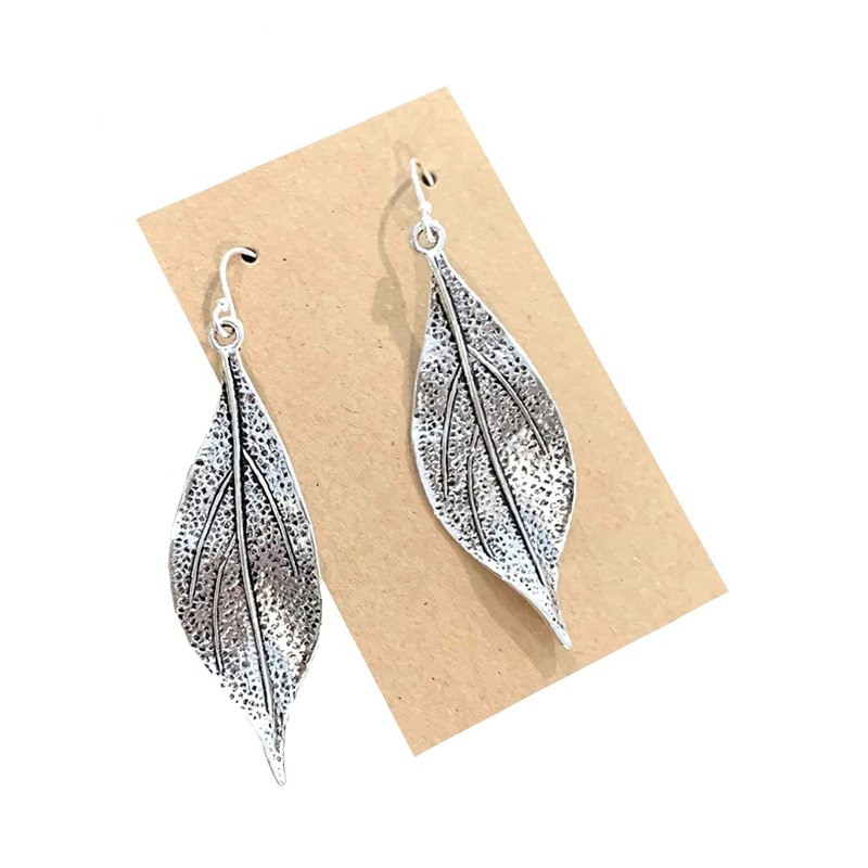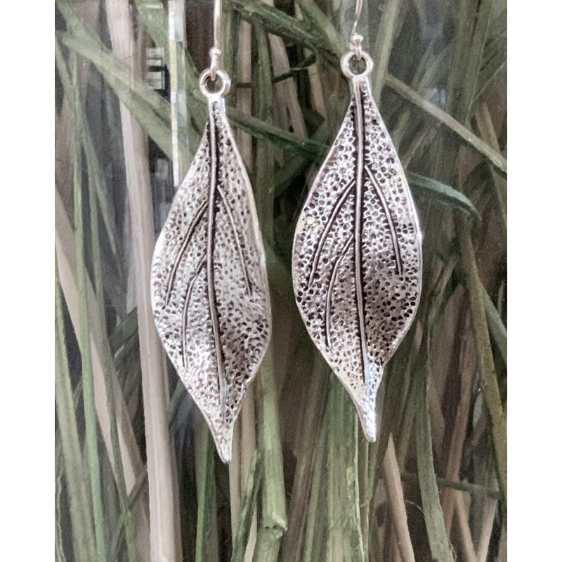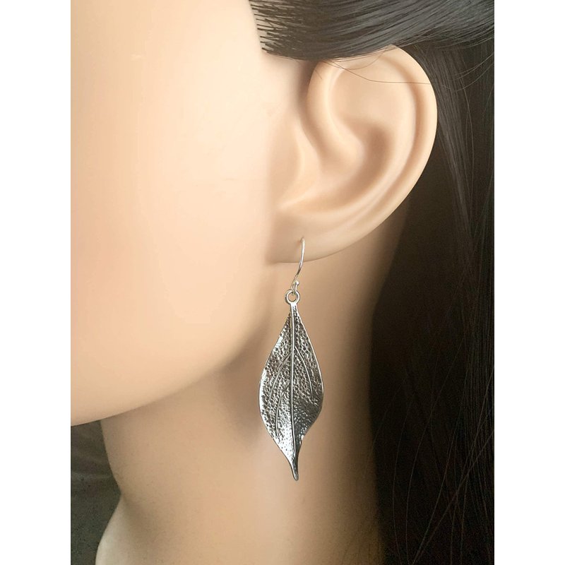 Wavy Leaf on Sterling Silver Dangle Earrings Bohemian Boho