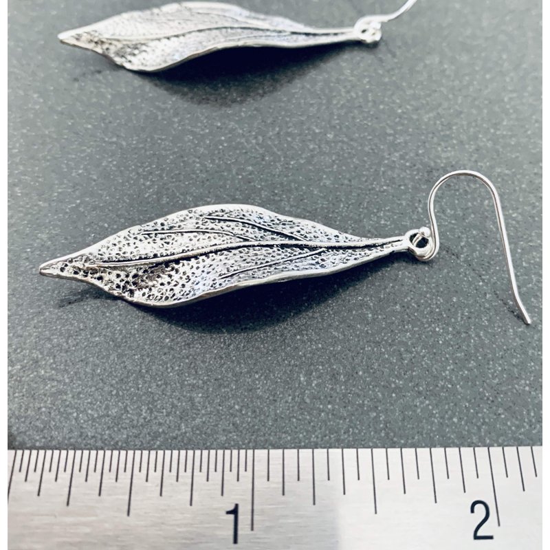 Sterling Silver ear wires. Leaf charm measures 2". Bohemian earrings. All of my items are handmade, arrive in a gift box and are packaged with care.