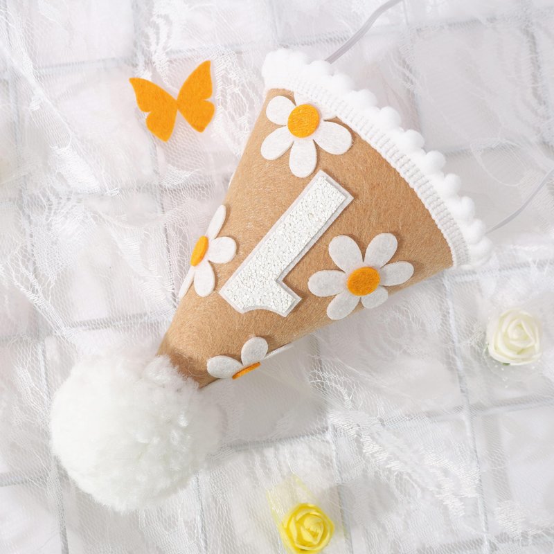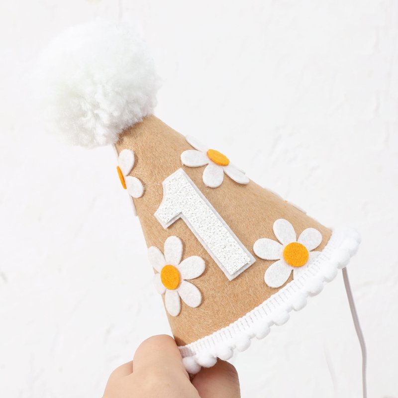 WAWUO Sweet Daisy Themed Birthday Hat - Party Decorations for Baby Girl or Boy's First Birthday