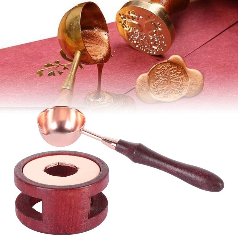 - 【High-Quality Material】The wax seal melter is made of high quality wood and copper, the wax seal spoon is made of copper and heat-insulating wood, which will not burn your fingers, safer and more durable. The wooden part is glazed with beautiful red, retro, noble, elegant, beautiful and practical combination. The metal part of wax warmer and wax spoon is polished, the surface is smooth, and the heat transfer is very good that you need not waste much time to heating the wax beads.