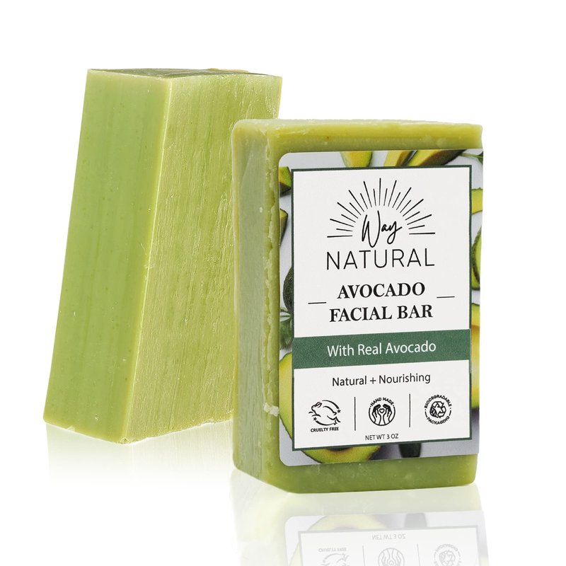 Way Natural Real Avocado Facial Bars - Goat Milk Soap for Face, Unscented - Nourishing, Soft, Gently Exfoliating Face Soap Bar - Organic Soap Bars, 2 (3oz)