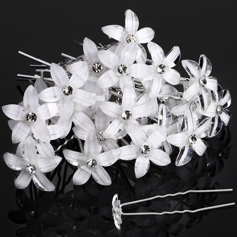 Waydress 24 Pieces Hair Pins, White Rhinestone Flower Hair Pins, U Shaped Flower Hair Clips, Wedding Hair Accessories for Women Brides Bridesmaids Hair Jewelry
