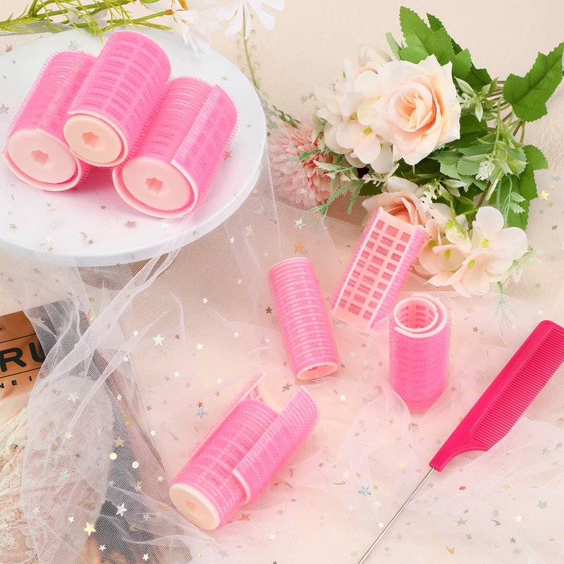 Features: Create various hairstyles: These plastic hair rollers can help to set your hair quickly and reduce hair breakage easily, creating various hairstyles with different lengths and textures, no matter thin, thick, long, short, curly, or straight hair. Practical presents: The curling roller and teasing comb sets are practical and useful accessories for you to send to yourself, your mom, wife, sister, and other hairstylists, sweet and charming presents on birthdays, anniversaries, housewarming, and Mother's Day. Specifications: Material: Hair roller: plastic Hair comb: plastic, stainless steel Color: rose red Size: Hair roller (diameter): 0.98 inches, 1.34 inches, 1.65 inches Hair comb: approx. 8.27 x 0.98 inches Package includes: 6 x Hair rollers 1 x Rat tail comb Notes: Manual measurement, please allow slight errors on size. The color may exist slight difference due to different screen displays. It is recommended to use curling iron when the hair is semi dry. If the hair is dry, spray a little water and use a hair dryer for better results. Pointed parts included, please keep away from children.