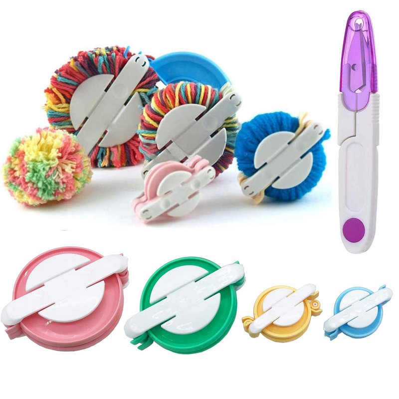 Wayion Pom Pom Maker Art DIY 4 Size Fluff Ball Bobble Weaver Needle Craft Knitting Wool Tool Kit with a Thread Cutter Scissors