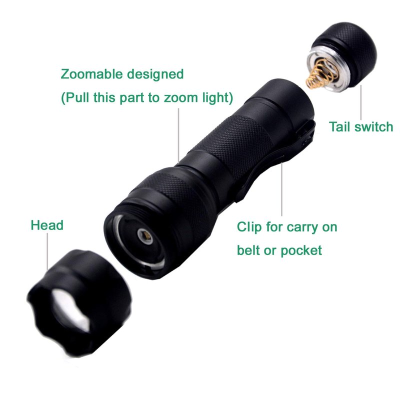 - The Battery is not included: This ir led flashlight use One rechargeable battery(Battery Size: Length of 65mm/2.55inch and Diameter of 18mm/0.71inch). Battery is not included in the package.