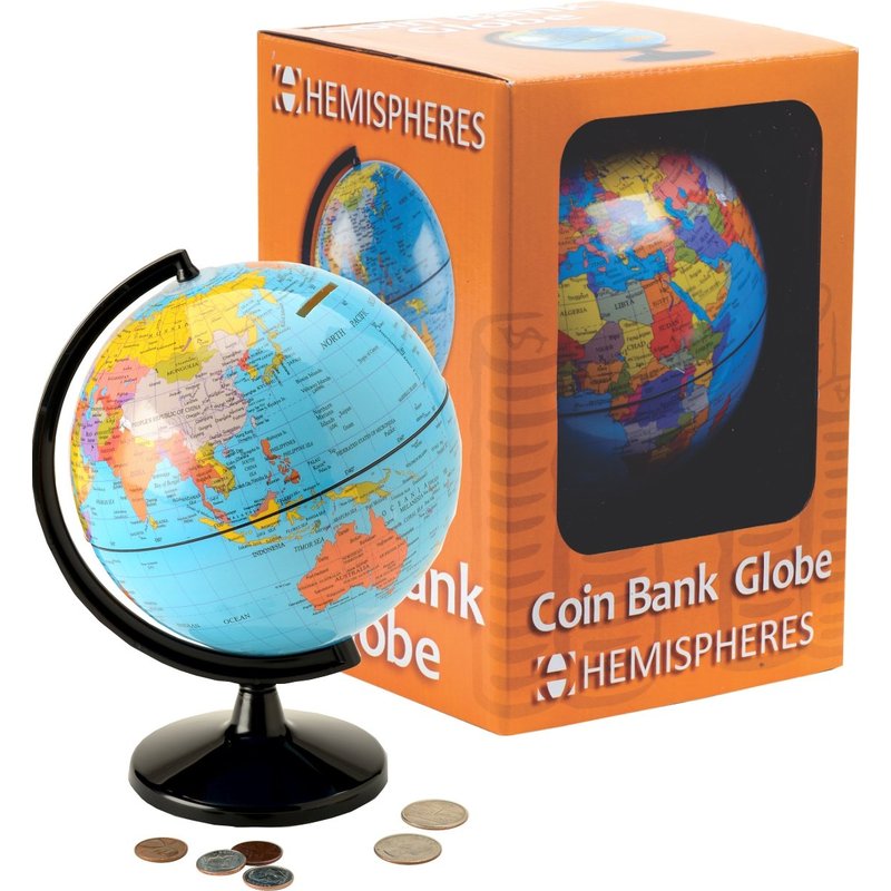 - Coin Bank Globe for Kids: Expand your kid’s perspective of the world around them and encourage them to save money with Waypoint Geographic’s Coin Bank Globe. With an open slot for adding money, it’s a nice gift item for kids of all ages.