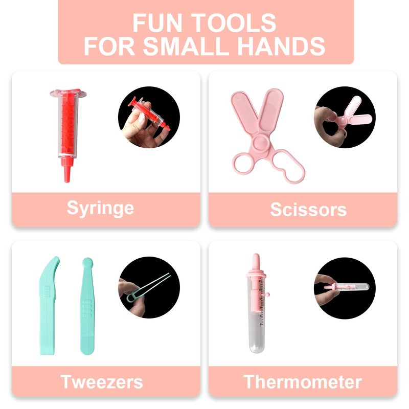 - The doctors play set not only help kids learn about the human body but also develops essential social and emotional skills like empathy, communication, and problem-solving.