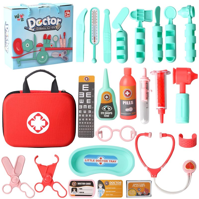 - The sturdy storage box makes clean-up a breeze and ensures all the pieces stay organized. It's also perfect for traveling, so we can take the doctor set with us wherever you go.