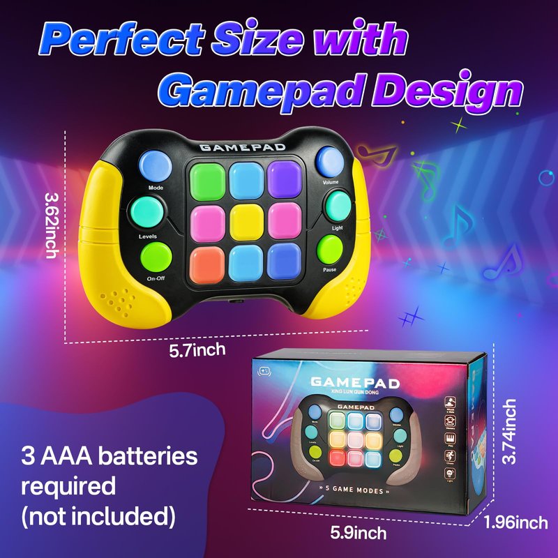 - Multifunctional for Endless Fun: With 5 different game modes including Whack-a-Mole, Music, Light, Memory, and Chase modes, the Fidget Toy offers a diverse range of gameplay experiences to keep you entertained