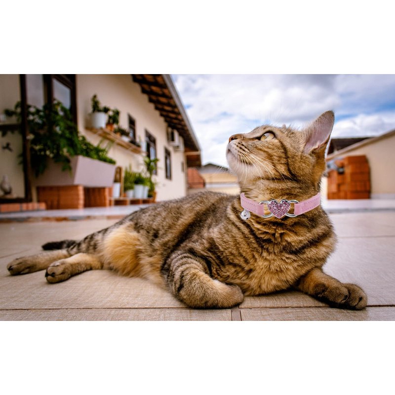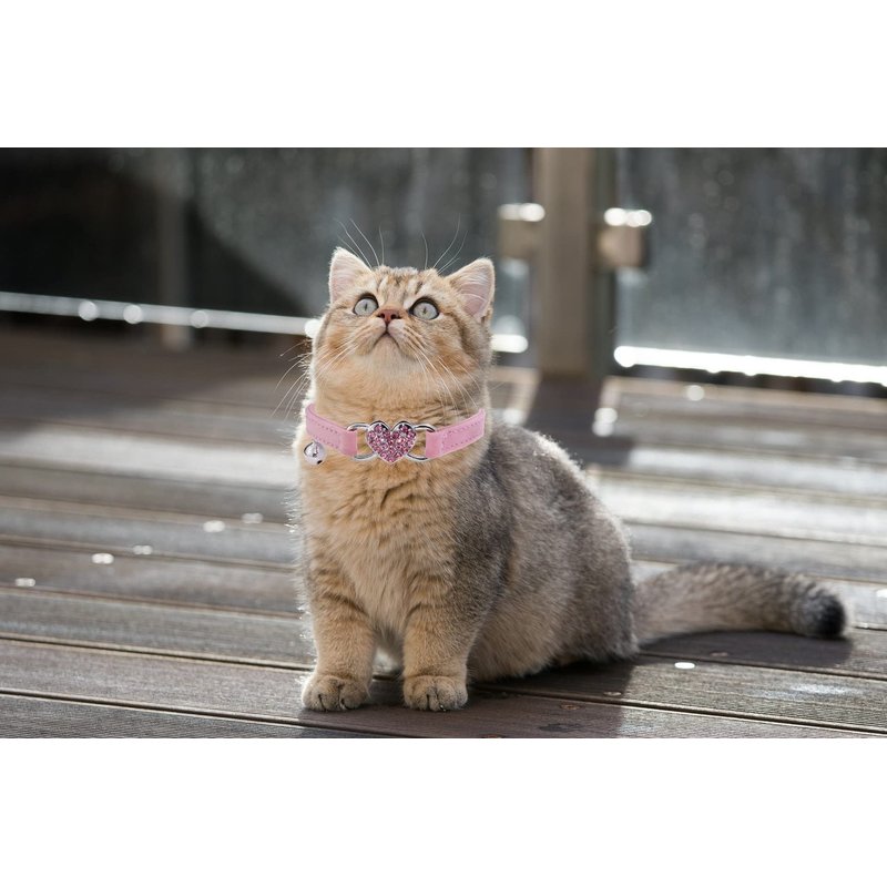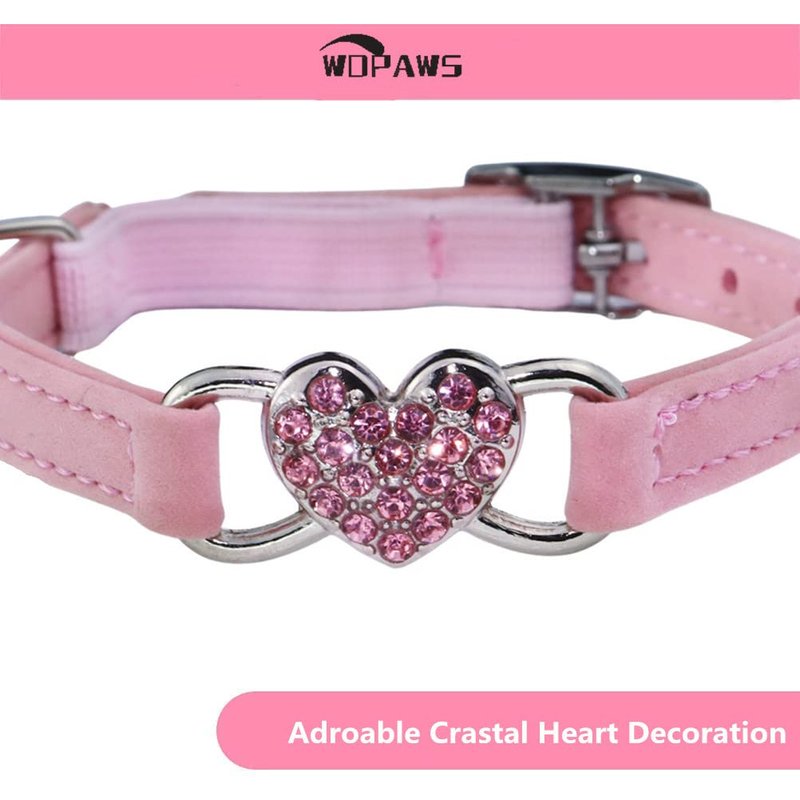 WDPAWS Heart Bling Cat Collar with Safety Belt and Bell Adjustable 8-10 inches for Kitten Cats (Pink)