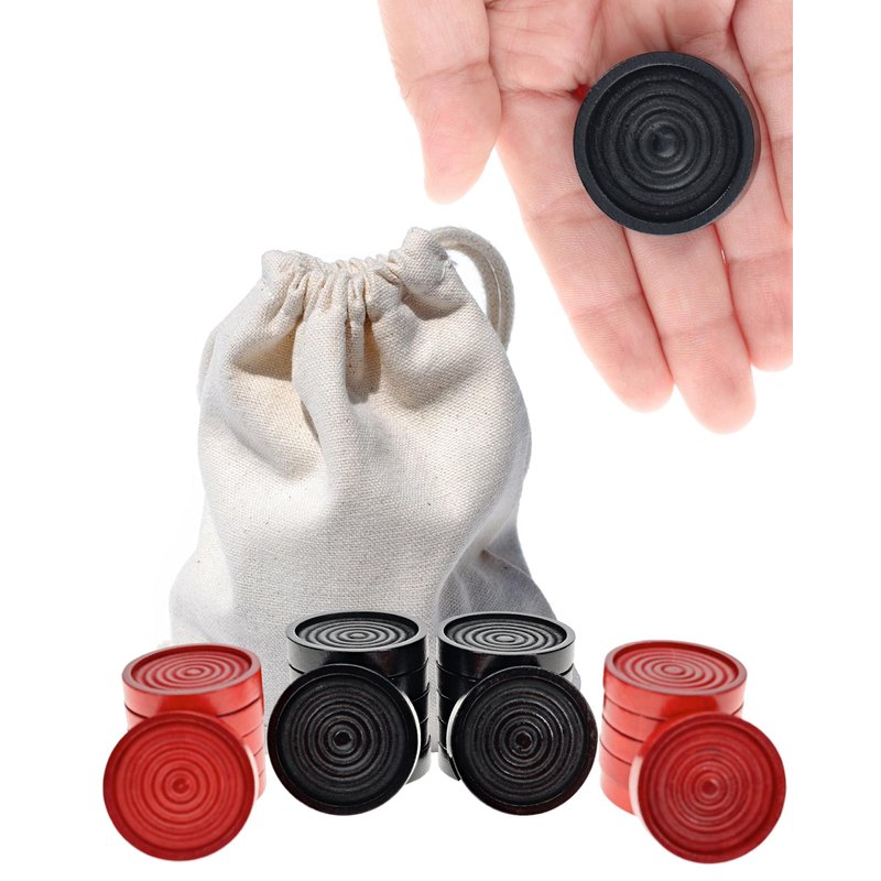 - UNBEATABLE QUALITY: These classic checkers game pieces are constructed using high quality, durable wood. Built to withstand every bump and fall. Sure to be treasured for many generations to come. This set comes with a cloth drawstring bag for simple storage.
