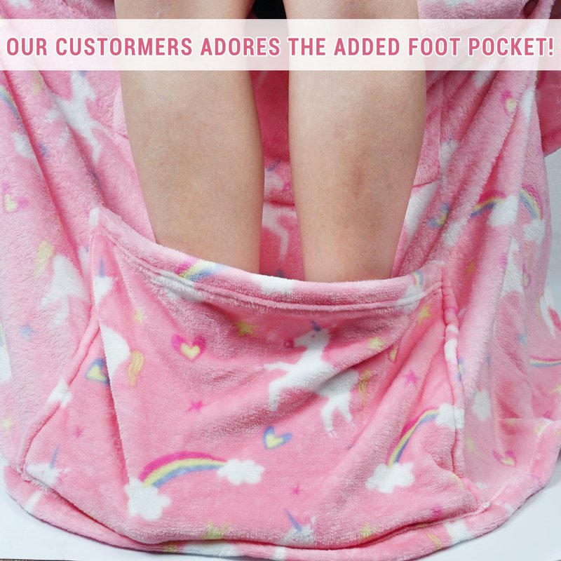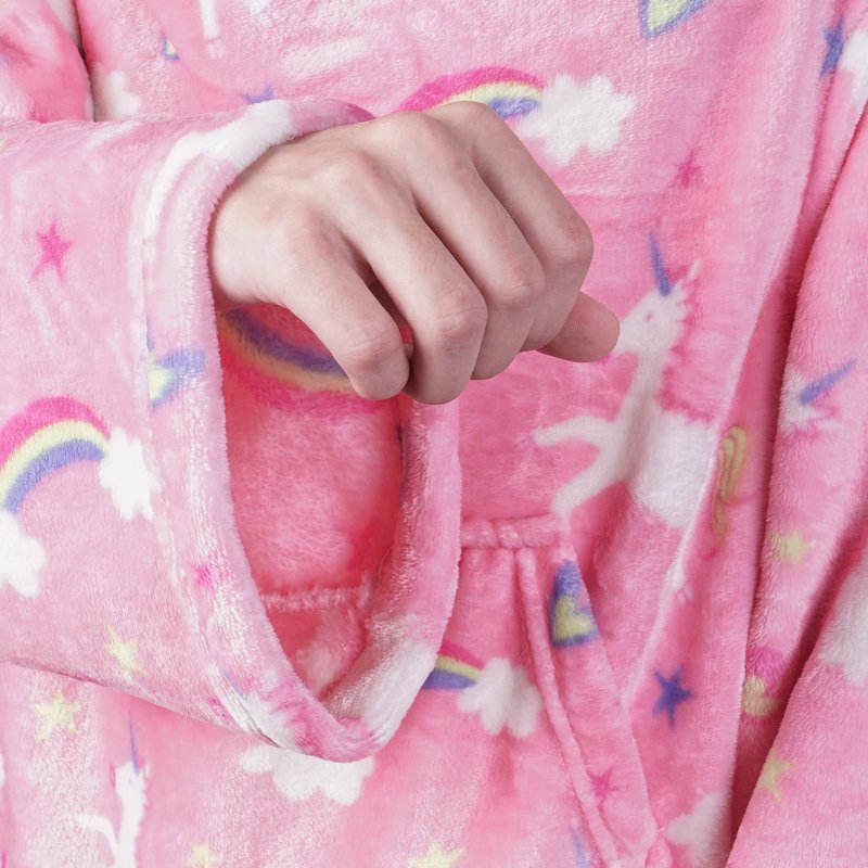 Wearable Fleece Blanket with Sleeves & Foot Pocket for Kids Boys Girls Children,Lightweight Soft Blanket with Sleeves and Hook & Loop 48" x 48" Pink Unicorn