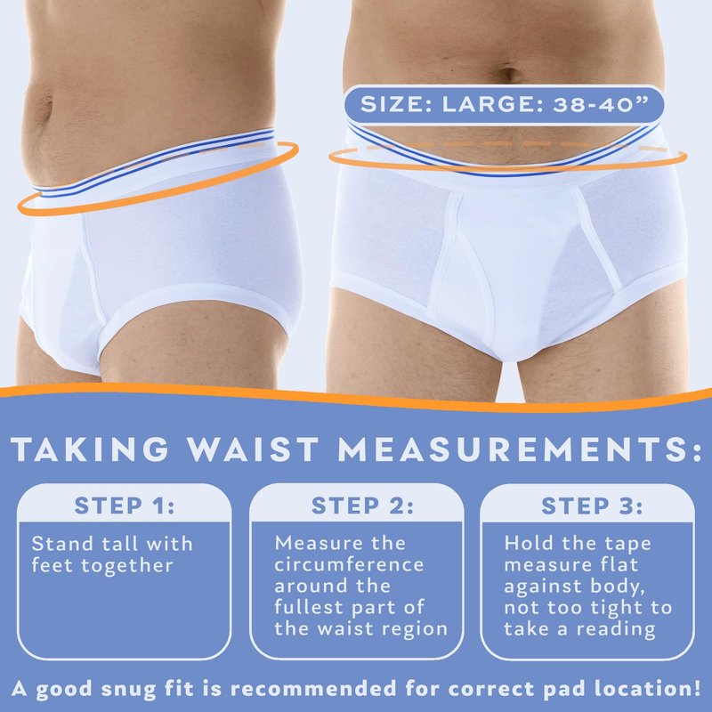 - BE YOURSELF AGAIN: Comfortable and breathable brief with discreet absorbent sewn in pad with Functioning Fly. Model #M100