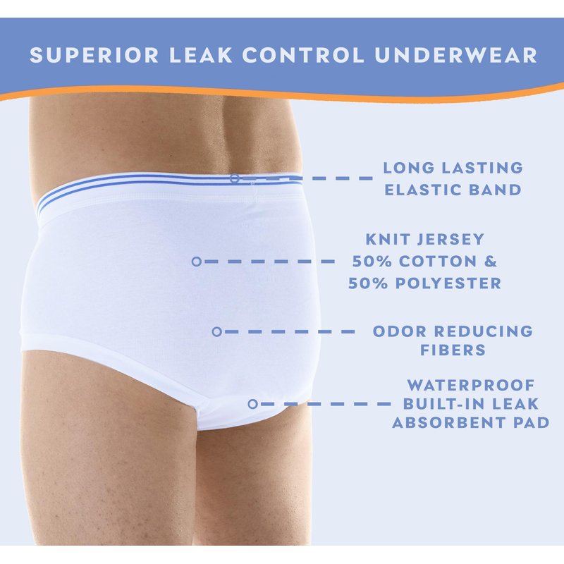 Wearever Incontinence Underwear for Men - Reusable & Washable Men's Bladder Control Briefs with Regular Absorbency - Leak Proof Underwear (Pack of 3) (White) (L)