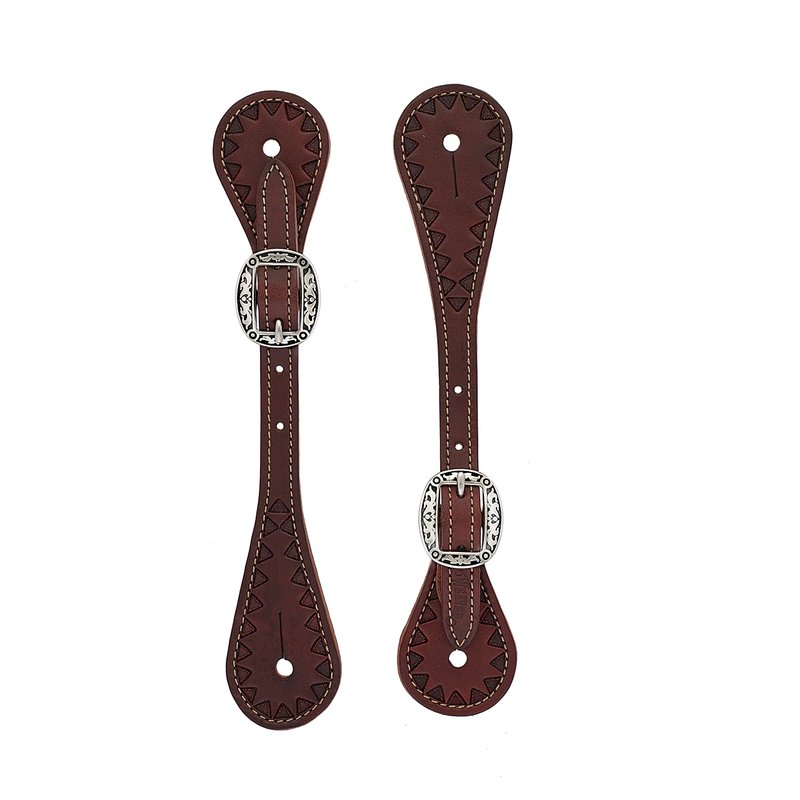 Weaver Leather Youth Hand Tooled Triangle Border Spur Straps, Chestnut