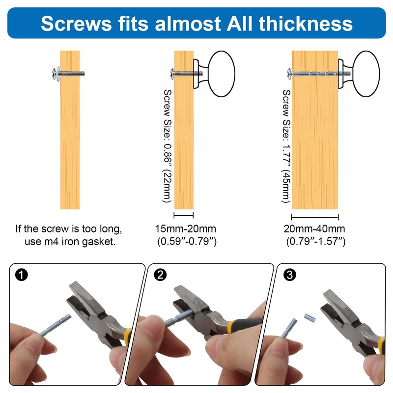 - ✅ Comes with Two Sizes of Screws: We provide two lengths of screws: 0.86" and 1.77". Among them, 1.77" is a shearable screw, which can satisfy most drawer installations.