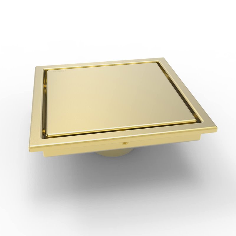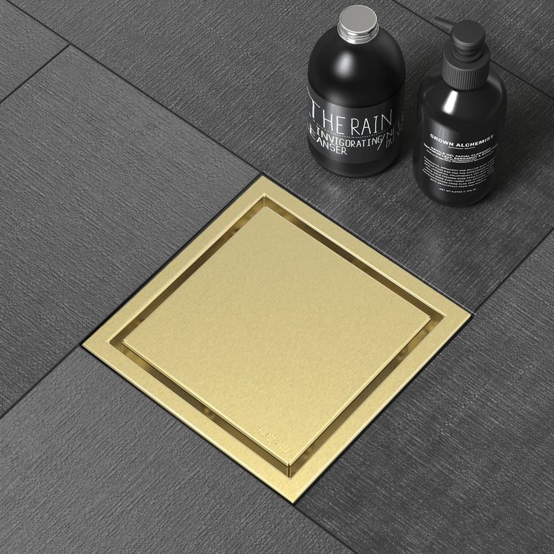 WEBANG 6 Inch Shower Square Drain Gold Floor Drain with Flange Reversible 2-in-1 Cover Tile Insert Grate Removable SUS304 Stainless Steel CUPC Certified Brushed Gold Brass
