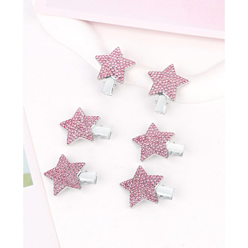 Wecoe 6pcs Pink Star Hair Clips Sparkly Rhinestone Alligator Hair Clips Kids Baby Toddler Little Girls Cute Bling Decorative Hair Clips Y2k Short Hair Braiding Hair Accessories for Women Girls Gift