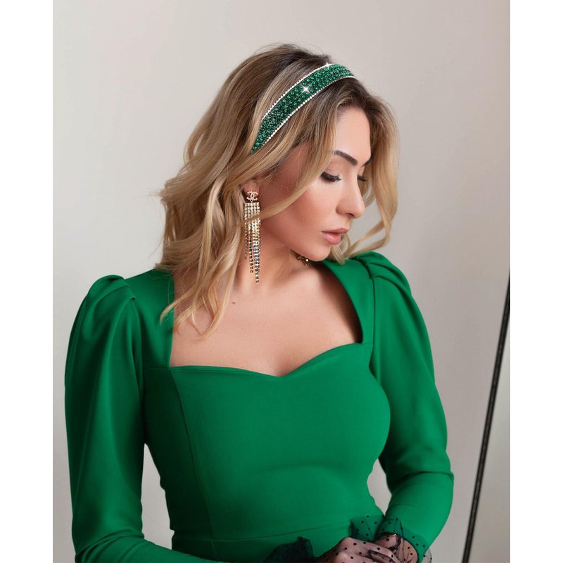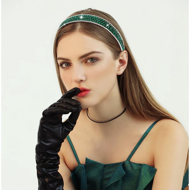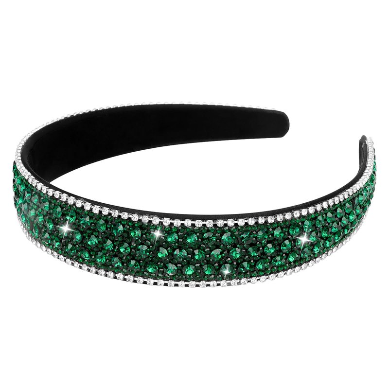 Wecoe Rhinestone Headband Women Girls Fashion Headband Dark Green Headband Bling Sparkly Crystal Diamond Headband Thin Hair Band Holiday Birthday Gift Short Hair Accessories For Women Girls