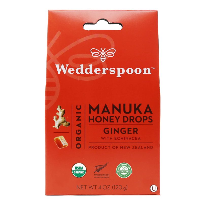 - ORGANIC COUGH DROPS: Wedderspoon Organic Manuka Honey Throat Soothing Drops include Echinacea which promotes immune health and Ginger; Honey is excellent for dry throats, and they taste great; 20 drops