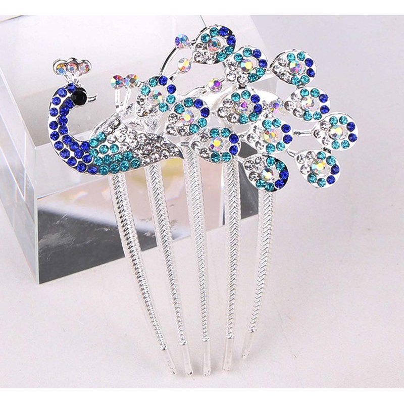 Wedding Bridal Headpiece Rhinestone Hair Comb Women Peacock Hair Clip Side Comb Hair Accessory(Blue)