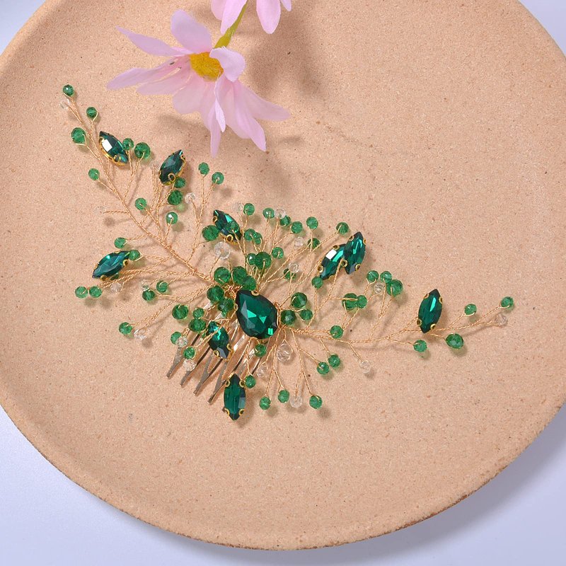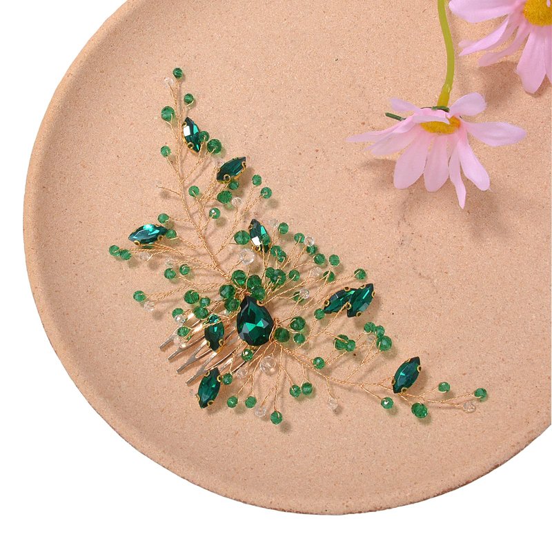 Beusoulover 100% Handmade Wedding Hair Piece This bridal hair accessory is stylish and elegant, will bring decorative effects to your hair style, make you more charming in the crowd. Made of high quality alloy gold plated wire and Emerald rhinestone, sparkly and shiny Please allow slight size different due to manual measurement and handmade workmanship, thank you for your kindly understanding Packaging: 1 x Wedding Hair Comb Headpiece Maintenance: 1.Please try not to let accessory with water, alkali liquor and other caustic liquids. 2. Please take off accessory before take exercises. 3. Please make sure to take off accessory before go to bed at night, please put accessory in a closed package. Contact Us Any questions, please feel free to contact us. We’ll reply you as soon as possible.
