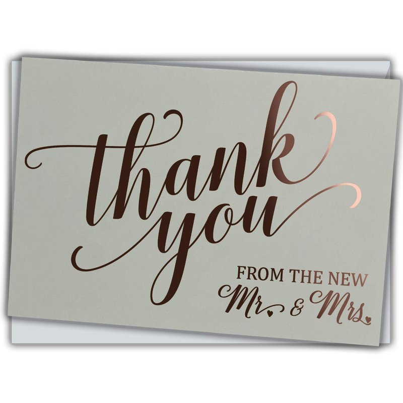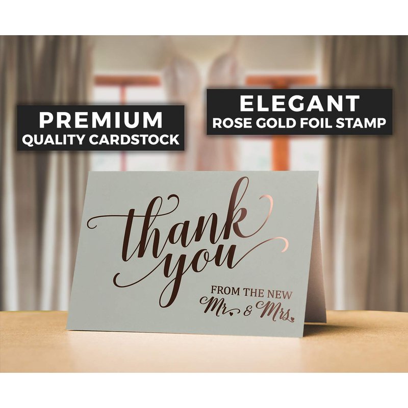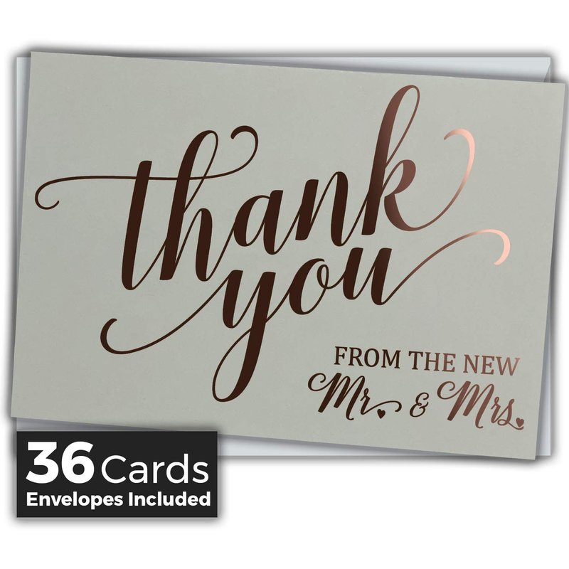 Wedding Thank You Cards - Rose Gold Foil Stamped Letterpress - 36 Cards Plus Envelopes - From the New Mr & Mrs Design