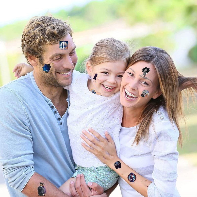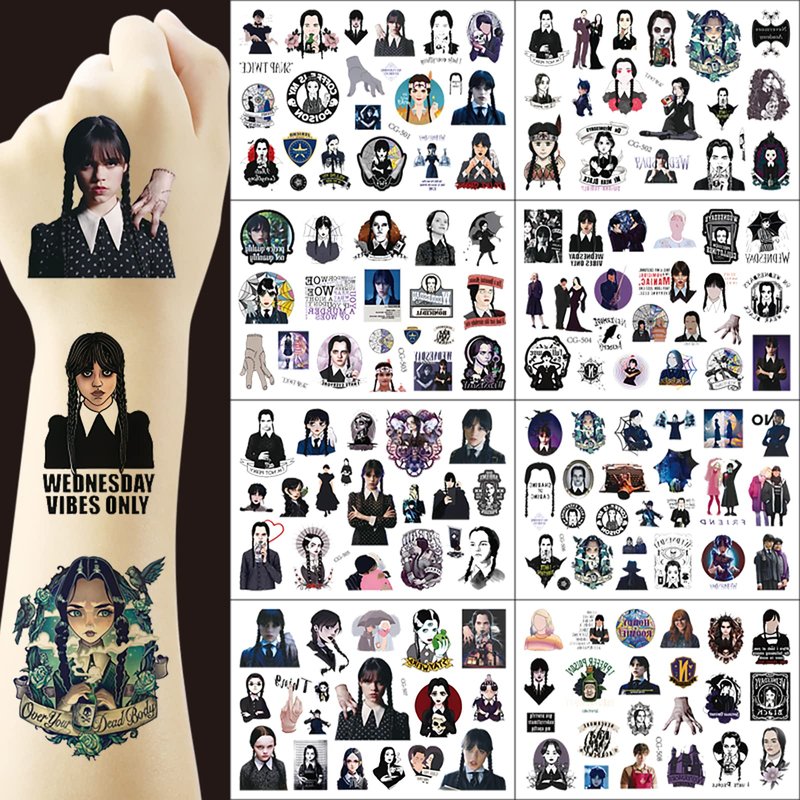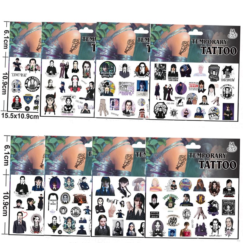 - What You Will Get: 8 Sheets tattoos stickers,features an assortment of wednesday addams themed characters, which can meet your all needs, each pattern measures 6.1 * 4.2 inch , one size fit all adult and kids,cute cartoon style design create more fun in the party! Popular hit with your kids and fans.