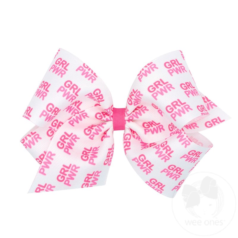Wee Ones Girls' Think Pink! Breast Cancer Awareness Grosgrain Hair Bow, Girl Power Print, Size King