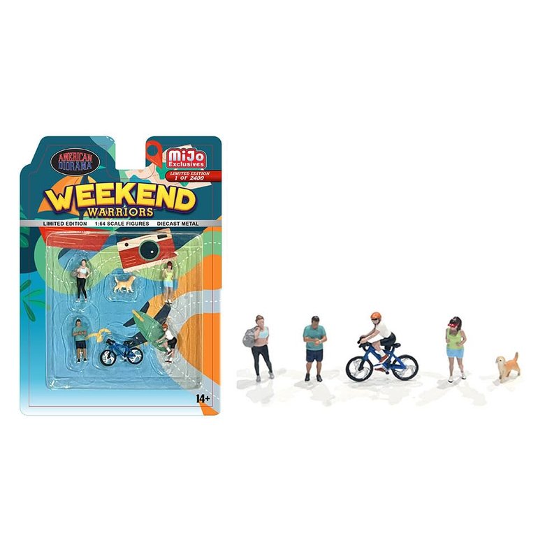 Brand new 1/64 scale diecast models of "Weekend Warriors" 6 piece Diecast Figure Set (4 Figures, 1 Dog, 1 Bicycle) Limited Edition to 2400 pieces Worldwide for 1/64 scale models by American Diorama AD-2402MJ