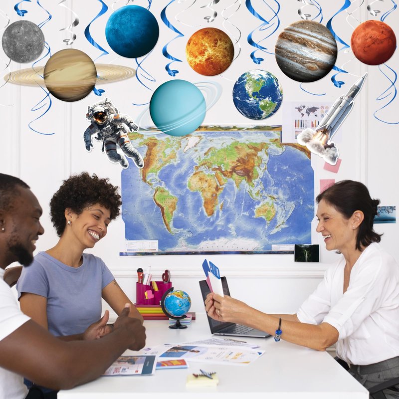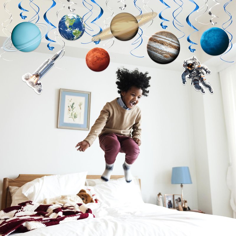 - Wide Applications: These space themed party swirl streamers decorations are nice for outer space party decorations, space party favors, galaxy party decorations, science party favors, bedroom decor. And these planets decor can also be hung in the classroom to teach students knowledge of the solar system, adding a lot of fun.