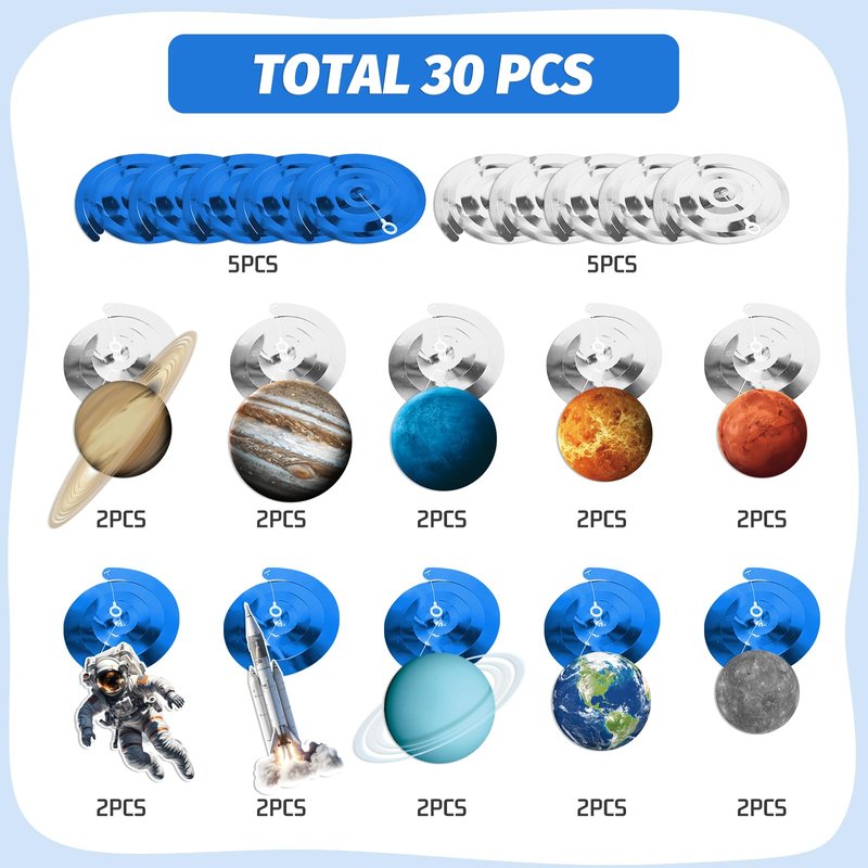 - Space Party Decorations: You will receive 30 piece galaxy party hanging decorations. Including 16 pcs planets, 2 pcs astronauts, 2 pcs rockets, 10 pcs foil hanging swirls; Using these outer space party decorations to make your party more colorful, enough quantity to meet your various party decoration needs.