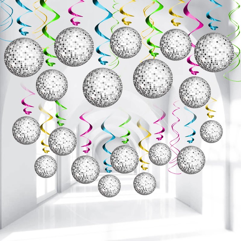 WEEPA 30 Pieces Disco Party Decorations 70s Disco Ball Hanging Swirls Disco Ball Ceiling Hanging Decor for Disco Fever Party Disco Themed 1970s Birthday Party Supplies