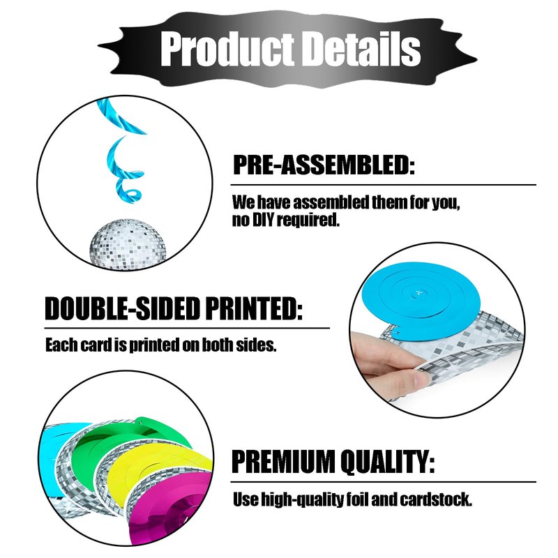 - Premium Quality: All of our disco hanging swirls are made of high-quality cardboard, double-sided printing, safe and non-toxic, stable and reliable to use, smooth surface, comfortable to the touch.