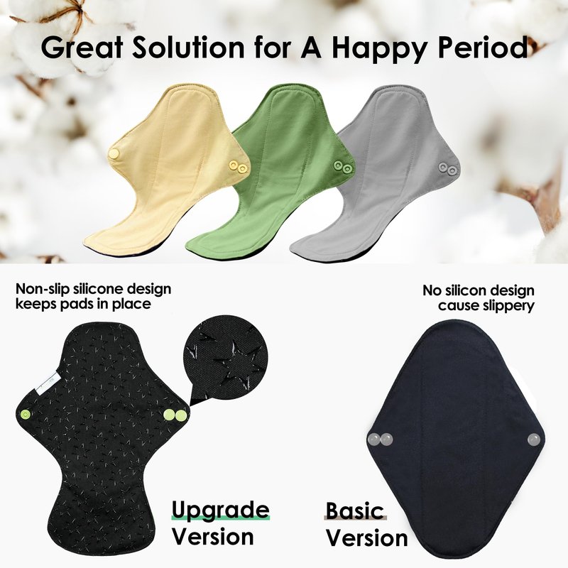 - Non-slip Design: Non-slip silicone dots cover the entire leak-free side that sit against underwear to keep cloth sanitary pads stay in place well. Two snaps design for better fasten the pads around your thin panties and make washable menstrual pad more firmly. Change panty liner every 2-6 hours or as needed. It is normal for some silicon dots come off after washes