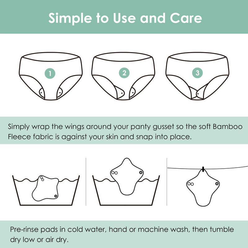 - Multi-Purpose Panty Liners: Our washable pads menstrual are ideal as period panties, postnatal maternity pads or washable light flow cloth urinary incontinence pads for teens, women and men. Cloth pads are great for travel, indoor and outdoor, exercise, or daily use. Washable pads menstrual coming with a leak-free PUL wet bag, the handle with snap is easy for you to carry or hang everywhere. Just use or wash, fold it, nobody will know what it is, no more embarrassing