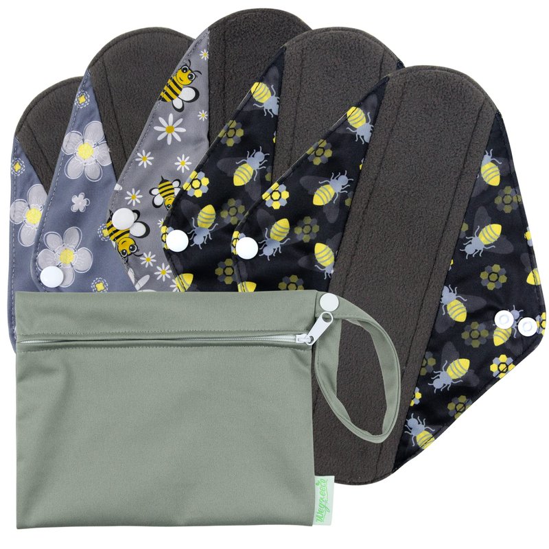 wegreeco Reusable Menstrual Pads for Women - Reusable Sanitary Pads | Reusable Panty Liners | Soft Cloth Menstrual Pads - 5 Pack, 1 Cloth Wet Bag (M, Bee & Bloom)
