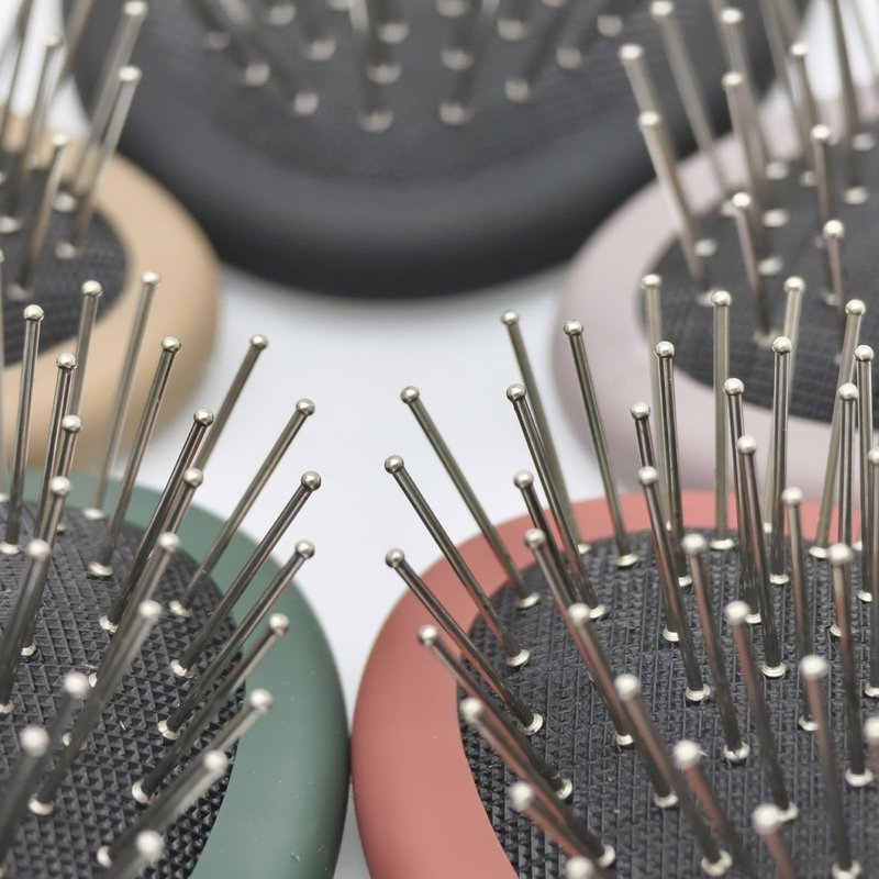 The WeiLa Anti-Static Hair Brush is designed for effortless detangling of both human hair and synthetic wigs. Featuring 134 round-tip stainless-steel bristles and a soft, air-venting oval cushion, this brush boasts gentle dry exfoliating experience without hair damage. While the anti-static wire needle reduces frizz and static for smooth, sleek results, its durable ABS handle provides convenience during daily use. Compatible for natural hair, wigs, and even fur, this versatile brush is essential for both home and travel.