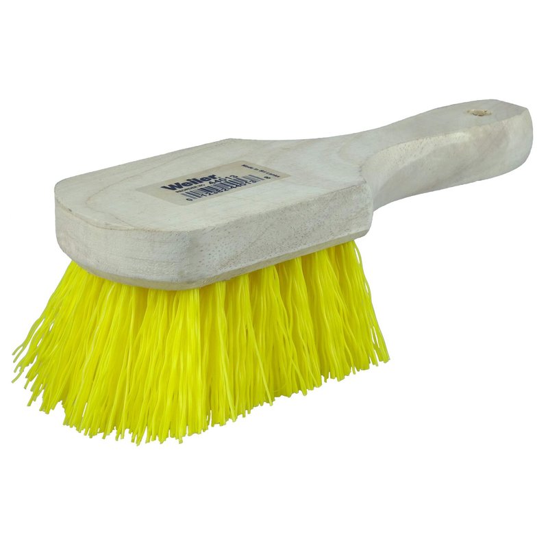 Weiler 44013 8" Utility Scrub Brush, Yellow Polypropylene Fill, Short Handle, Wood Block