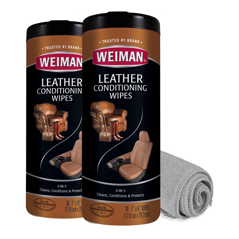 Weiman Leather Cleaning Kit Leather Wipes & Microfiber Cloth allows you to clean, condition and protect smooth finished leather surfaces, providing UV protection & long lasting leather restoration in just one simple step. From shoes to accessories to car interiors, our formula rejuvenates leather with natural oils while safely removing dirt, soil and residue build up. Included is the Weiman Large Microfiber Cloth that is made of a lint-free, scratch-free, fine & gentle mixture of microfibers that will clean productively in one swipe. Use Weiman Leather Wipes on a regular basis to quickly and easily maintain your favorite leather accessories, as well as promoting flexibility, leaving your leather feeling and looking sharp. Six natural oils moisturize, soften & restore leather while the UVX-15 sunscreen protects it from the damaging effects of the sun. Weiman Leather Wipes are premoistened wipes that can be applied directly onto smooth finished leather surfaces such as coats, furniture, automobile/car interiors, motorcycle seats, briefcases, couches, shoes and purses. Weiman Products is the perfect home, chef, pro, scratch resistant, cleansing, household, professional, and at work solution for all of your stainless steel cleaning and buffing needs. The best specialty cleaning products you will buy online or in a store. When cleaning is your therapy, Weiman is your method, just wipe away and not a fingerprint in site! Weiman wants each of the surfaces in your home to look its best. That’s why we have developed cleaning products that go beyond simply cleaning to beautify and protect each of your delicate, difficult to care for surfaces. Weiman Leather Wipes allows you to clean, condition and protect smooth finished leather surfaces, providing UV protection & long lasting leather restoration in just one simple step. From shoes to accessories to car interiors, our formula rejuvenates leather with natural oils while safely removing dirt, soil and residue build up.