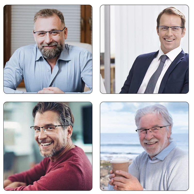 - 【Light Weight Readers for Men】 Our upgraded reading glasses have thinner metal frame, which makes them more lightweight and fashionable. Lightweight metal frame reading glasses with spring hinges ensure a comfortable fit without pinching the face. Classic rectangular half-frame design, suitable for men, puts no pressure on the nose.