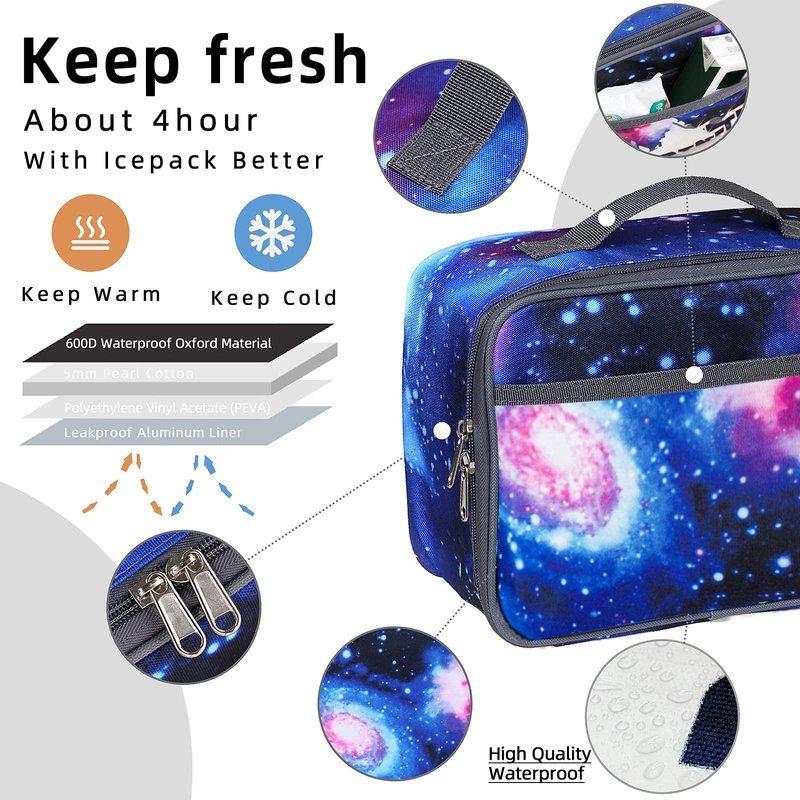 WeiWyTex Galaxy Insulated Lunch Bag for Boys/Girls, Reusable Cooler Lunch Box for Kids School/Picnic/Travel