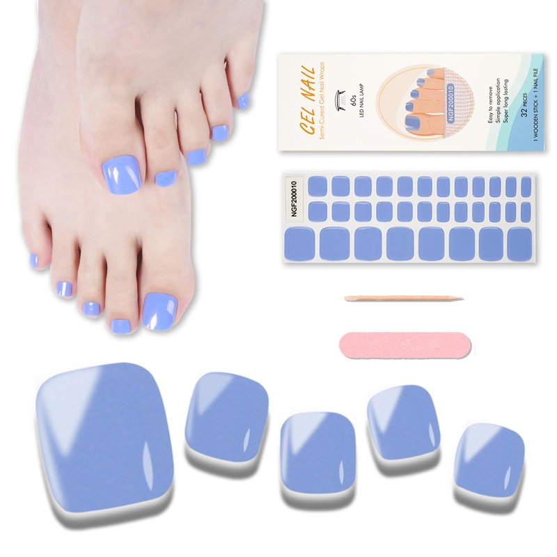 Wekcekcek Semi Cured Gel Toenail Strips, 32 Mysterious Blue Toenail Stickers Pedicure Strips Salon Quality Nail Wraps with Nail File & Wood Stick(UV/LED Lamp Required)