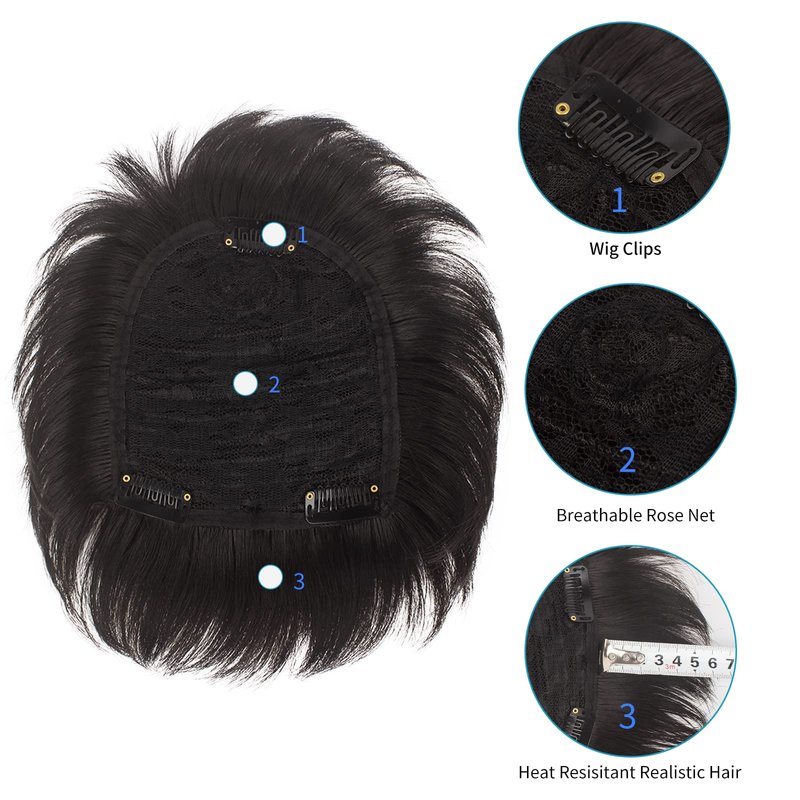 - ♥【Wig Material】: The crown hair topper adopted high quality heat resistant material.Under 180 degrees Celsius temperature it can be straightened or ironed according to your own needs.Rose inner net with 3 clips can easily secure or remove on head,breathable and durable.Also be used with wig tapes.