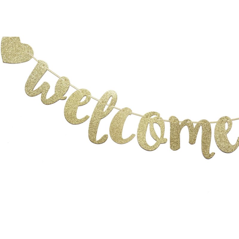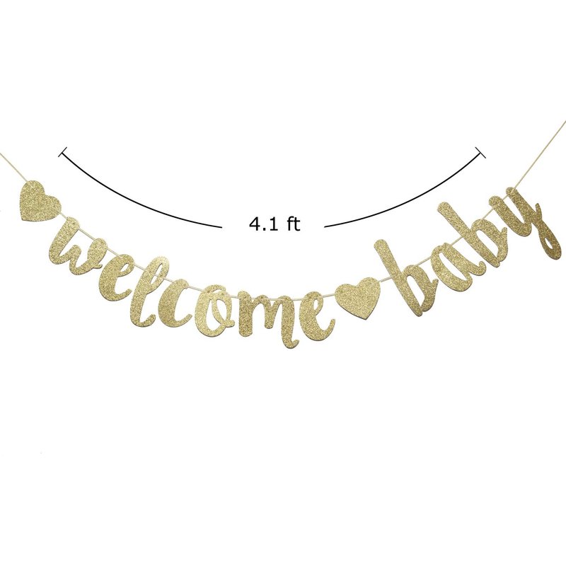 - This gold glitter welcome baby banner will bring a touch of sparkle to your event!