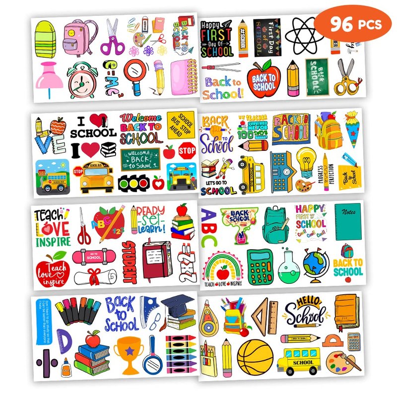 Welcome Back To School Temporary Tattoos Theme Birthday Party Decorations Supplies Favors Cute Bus Fake Tattoo Stickers 96 PCS Gifts for Kids Girls Boys Teachers Students Classroom Rewards Carnival