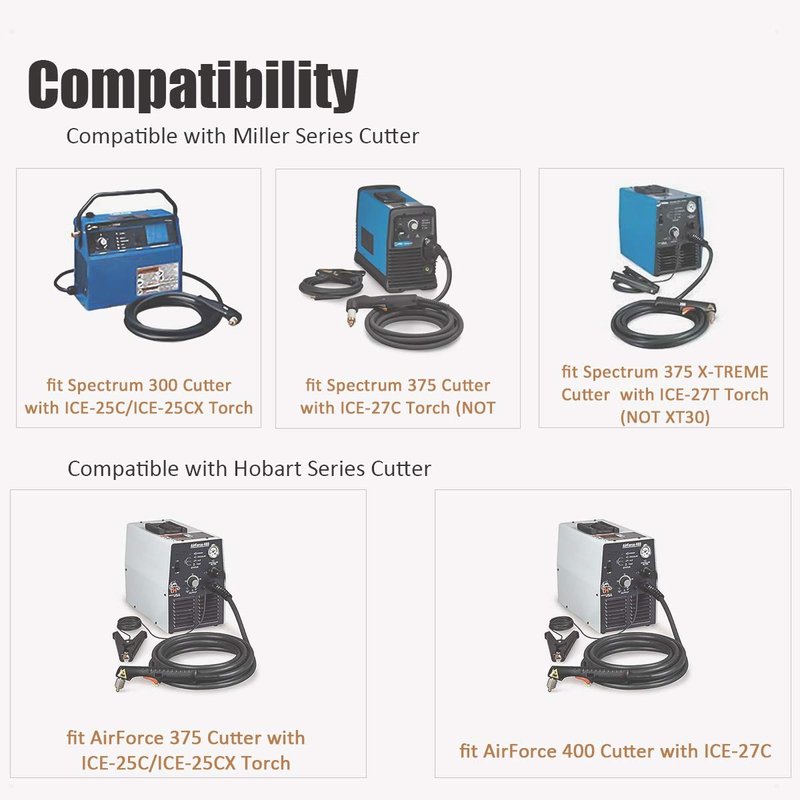 - The consumables can compatible on Hobart AirForce 400 Plasma cutting machine with ICE-27C plasma torch