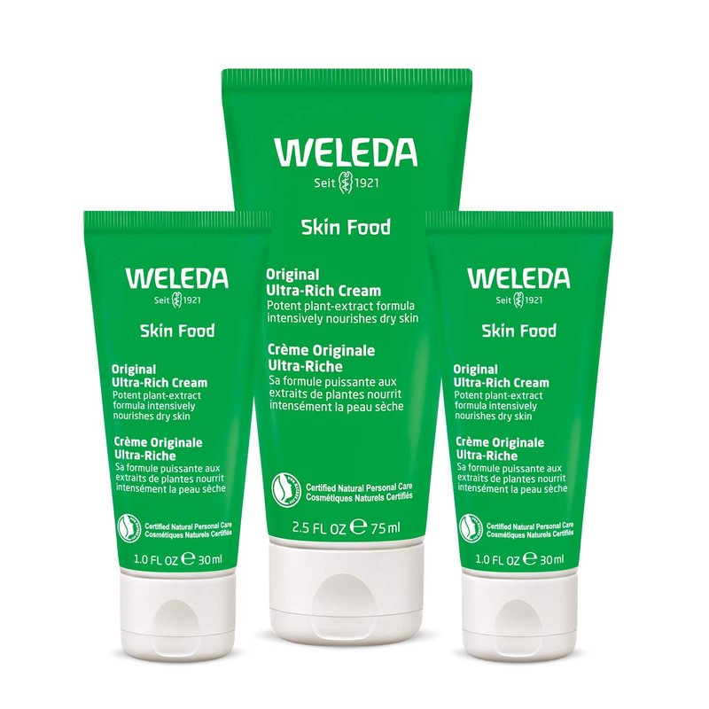 Weleda Skin Food Original Ultra-Rich Body Cream Trio, 3 Piece Set, 2.5 Fluid Ounce (Pack of 1), 1 Fluid Ounce (Pack of 2), Plant Rich Moisturizer and Lip Care with Chamomile and Calendula