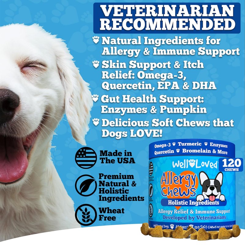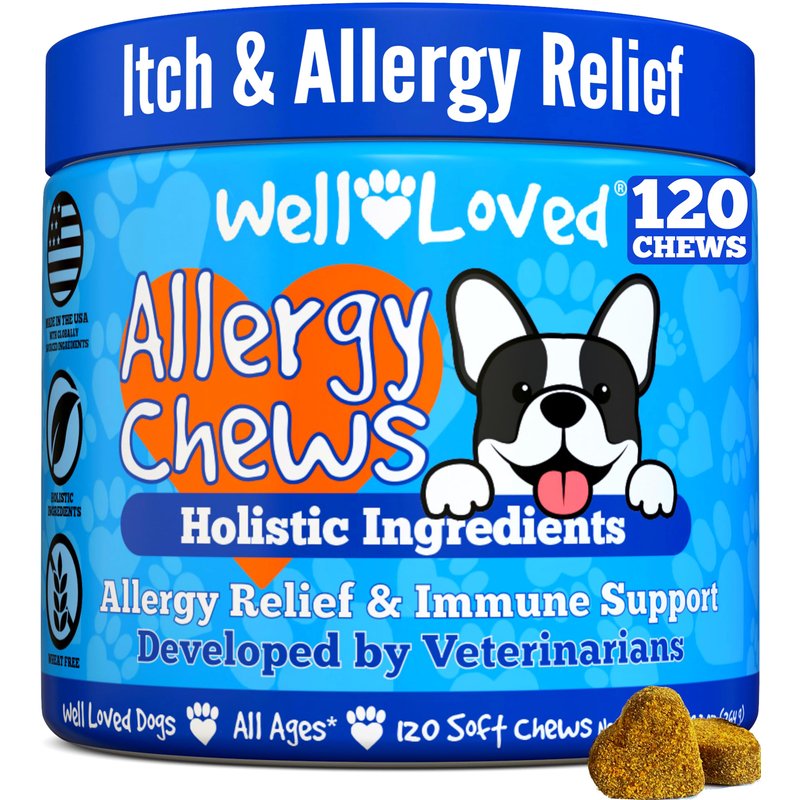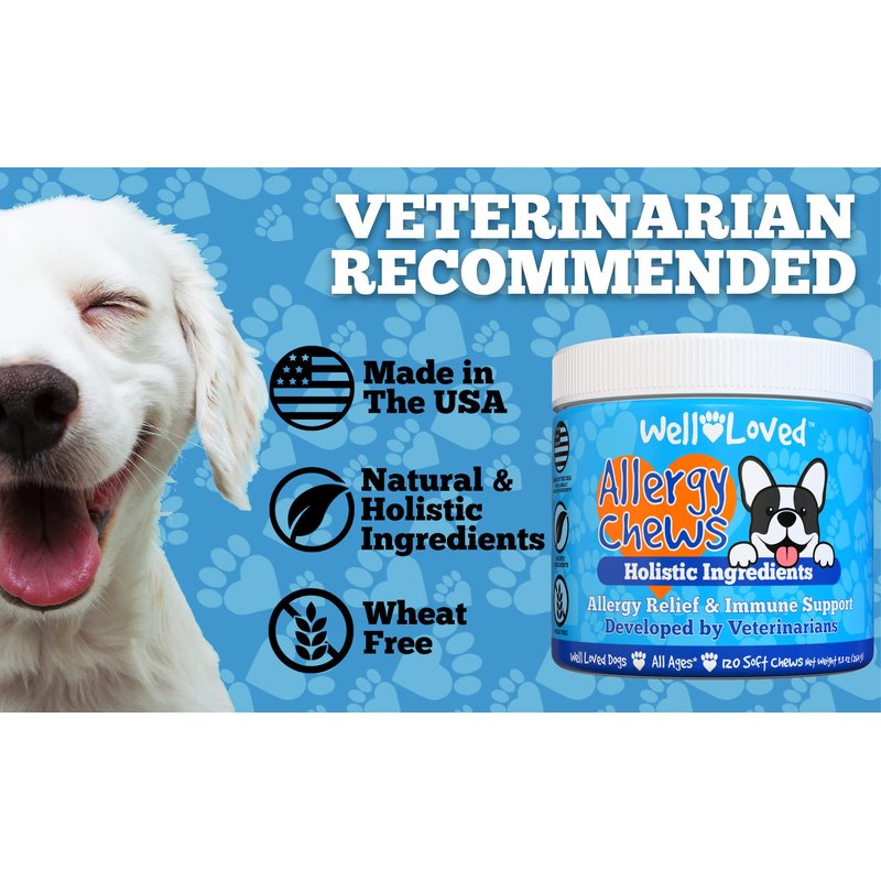 Well Loved Dog Allergy Chews - Dog Allergy Relief, Made in USA, Vet Developed, Hot Spot Treatment for Dogs, Dog Itch Relief, Anti Itch for Dogs, Dog Vitamins, Dog Skin Allergies Treatment, 120 Count